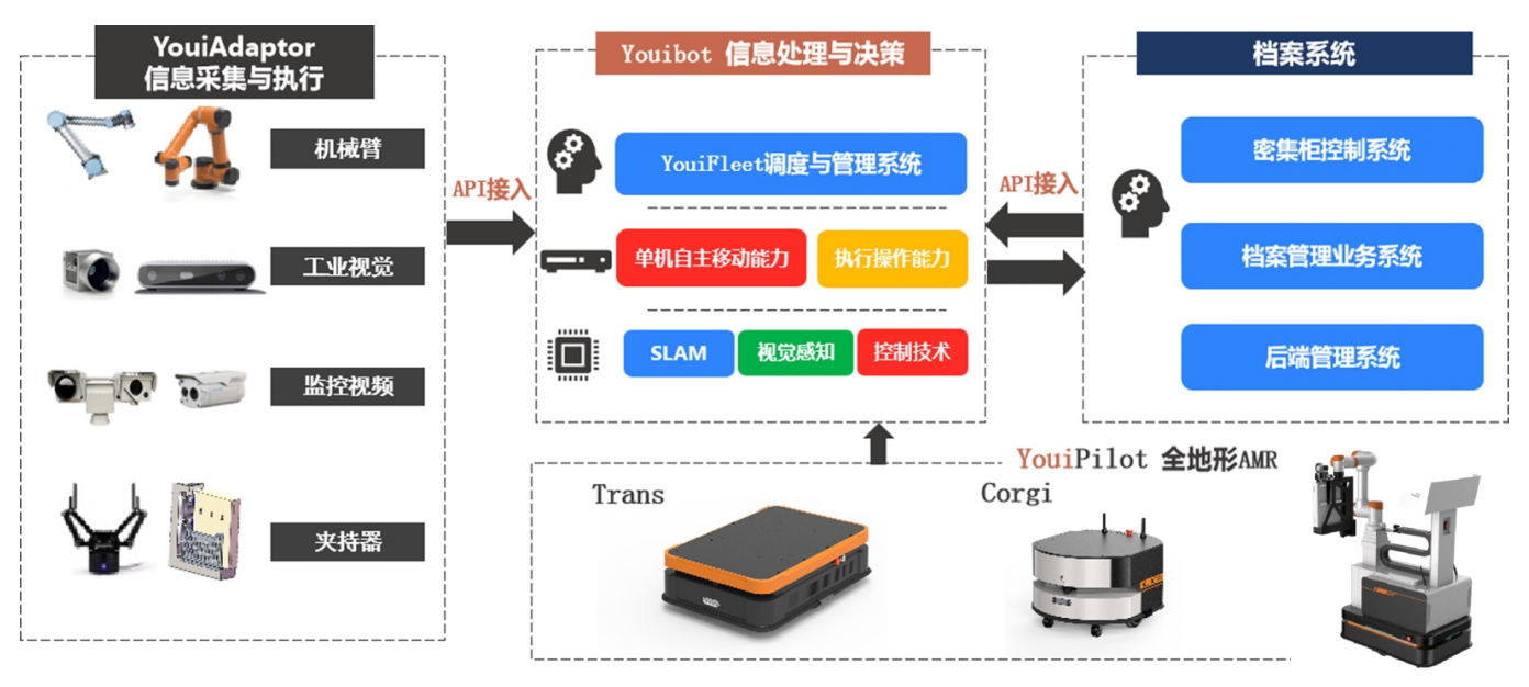 以移动机器人为载体的智能档案库房管理机器人,建设智慧档案库房为目的,从实际应用出发,提供一种更好的稳定性和安全性的实体档案管理方法,快速实现档案存取档案文件盘点、存取记录可追溯、借阅审批信息化、档案数据统计等,在档案日常管理中实现人与档案的完全隔离,响应国家有关部门“人档隔离”的号召。在国内首批次利用机器人技术实现无人化档案管控。