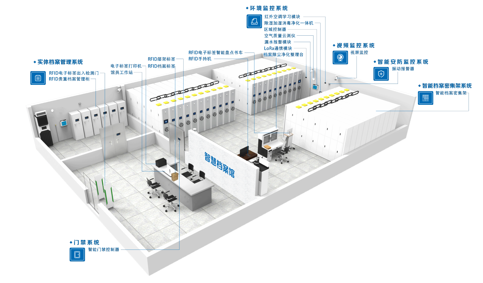 通过对实体档案进行无人化、集约化管理,实现人档分离,有效解决人工管理涉密档案过程中存在的安全性、真实性问题。同时通过系统的自动化管理,能够实现大批量档案集中管理。主要应用于人事档案、卷宗、图纸、文献等涉密资料管理。构建以数据库为基础的电子档案、纸质实物档案、图像档案、音视频档案、专业档案等专项档案的档案管理信息系统。